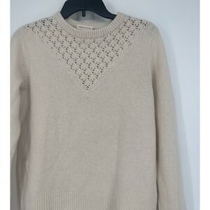 Rebecca Taylor Pointelle-Yoke Pullover Sweater size M ivory