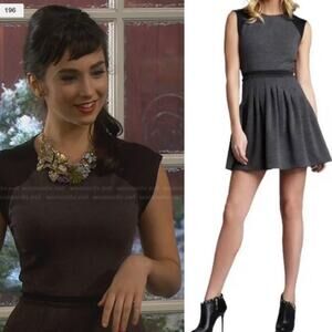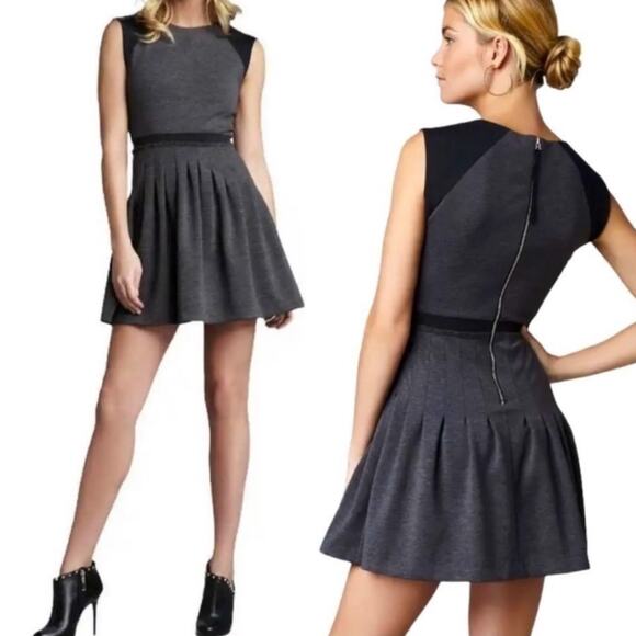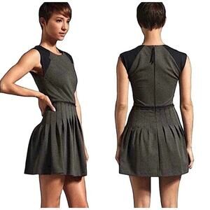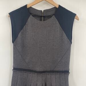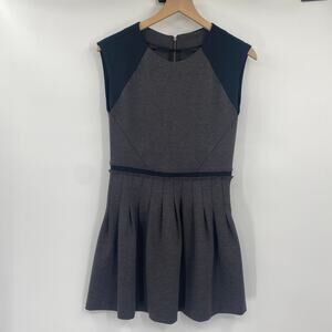 Rebecca Taylor Ponte Mini Dress Fit & Flare Pleated Skirt Colorblock Gray Black