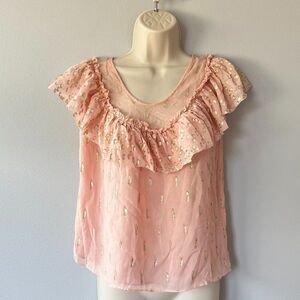 Rebecca Taylor Powder Pink and Gold Silk Blouse Size XXS