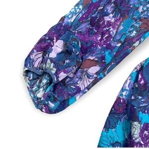 Rebecca Taylor - Purple & Blue Floral Print Long Sleeve Silk Blouse W/ Neck Tie