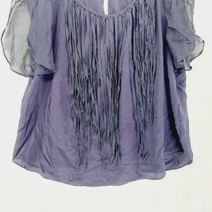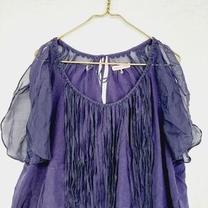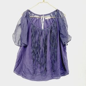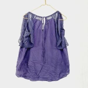 Rebecca Taylor Purple Silk Sheer Off Shoulder Round Neck Blouse 5039