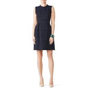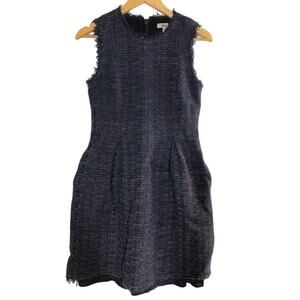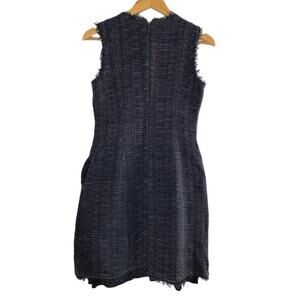 Rebecca Taylor Rainbow Tweed Dress Sleeveless Pleated A-Line Mini Navy Blue 4