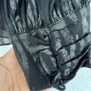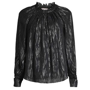 Rebecca Taylor Revolve Shirt Safari Metallic Ruffle Silk Blouse in Black