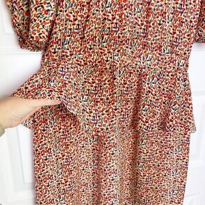 Rebecca Taylor Romantic Ditsy Floral 100% Silk Zip Front Peplum Mini Dress