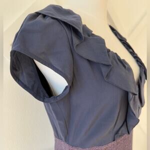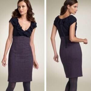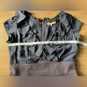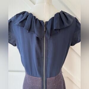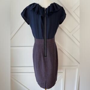 Rebecca Taylor Ruffle 100% Silk Wool Tweed Sheath Dress Blue and Purple Size 10