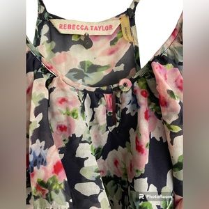 Rebecca Taylor lined ruffle chiffon camisole with a button at the neckline.