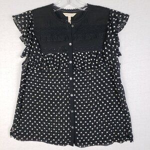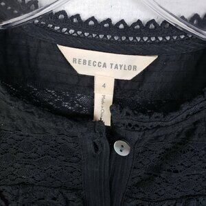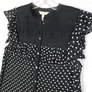 Rebecca Taylor Ruffled Blouse Top Polka Dot Embroidery Cotton Silk blend