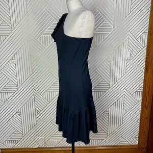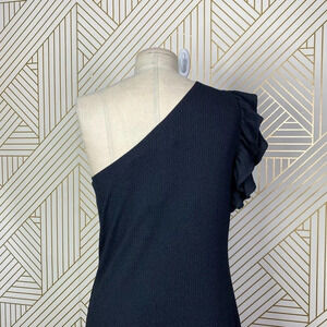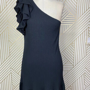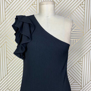 Rebecca Taylor Ruffled One Shoulder Ribbed Knit Dress In Black Size US Large