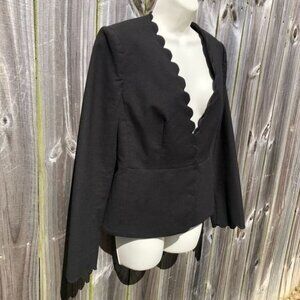 Rebecca Taylor Scalloped Blazer 6 Jacket Suit Black Long Sleeve Top Peplum Small