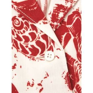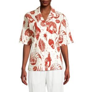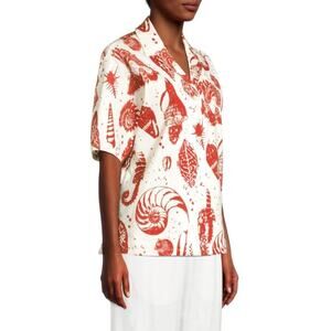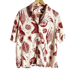 Rebecca Taylor Sea Shore Cabana Red White Seashell Print Linen Shirt Size Large