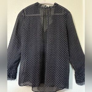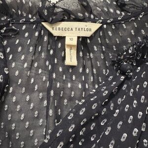 Rebecca Taylor Sheer, Feminine Navy Blue and White Clip Dot Silk/Viscose Blouse