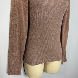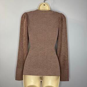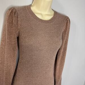 Rebecca Taylor Shimmer Puff Shoulder Sweater Quiet Luxury Beige Women's S