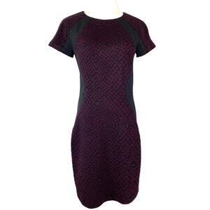 Rebecca Taylor Short Sleeve Exposed Gold Zipper Sheath Dress in Black Purple 8