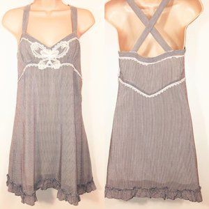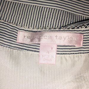 REBECCA TAYLOR Blue and White Striped Dress. Appliqué butterfly detail. Cute blue and white striped pattern. Cotton and silk blend with 100% silk lining.