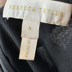 Rebecca Taylor Silk Blend Black Silver Lurex Metallic Bell Sleeve Blouse Size 8