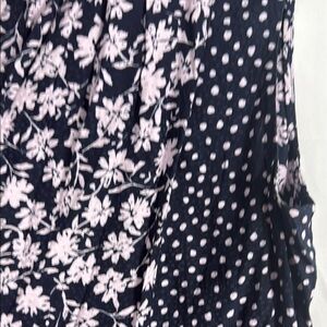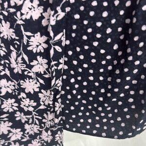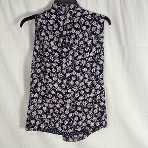 Chic button down with floral design. Navy base with pink flowers. Perfect for any occasion. Gently worn preowned condition.