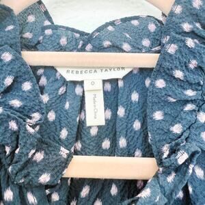 Rebecca Taylor Silk Blend Peasant Ruffle Polka Dot Blouse Navy Size 0