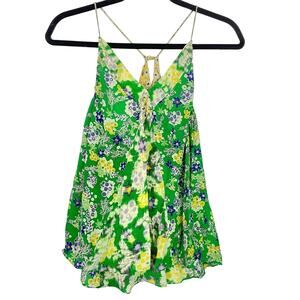 Rebecca Taylor | Silk Blouse Tank Top Green Yellow Purple Small