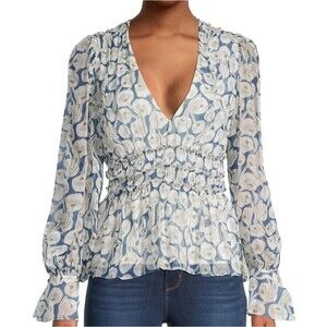 Rebecca Taylor Silk Deco Fleur Long Sleeve V-Neck Floral Blouse Size 12
