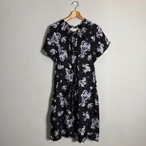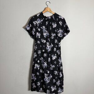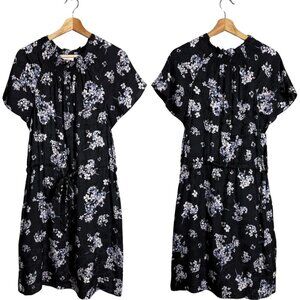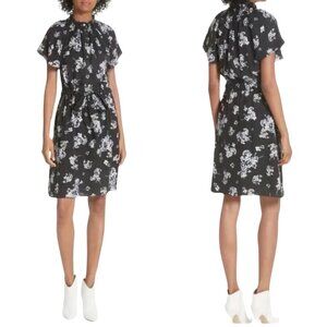 Rebecca Taylor Silk Floral Button Up Mock Neck Mini Dress Women's 6 Black Whimsy