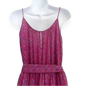 Rebecca Taylor Silk Floral Ditsy Printed Sleeveless Above the Knee Dress size 6. Features: ruffled front bodice, spaghetti straps, pullover styling, button keyhole back, elastic waistband with removable self fabric tie around belt. 100% Silk. Approximate measurements: Armpit to armpit 19”, waist relaxed (unstretched) 28.5”, length 37.5”. Size label is missing, please use measurements and size chart photo as a guideline. In excellent condition!