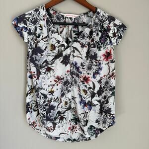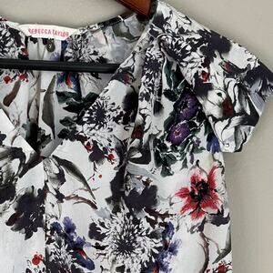 Rebecca Taylor Silk Gray Floral Blouse Romantic Boho V-Neck Flutter Sleeve