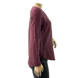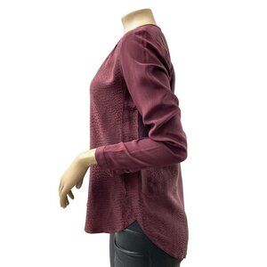 Rebecca Taylor Silk Keyhole Neck Crocodile Long Sleeve Blouse Purple Women M