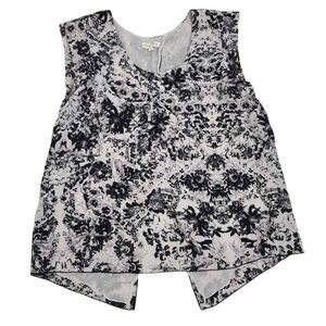 Rebecca Taylor Silk Kiku Print Floral Top Sleeveless Split Back Black Ivory Sz 2