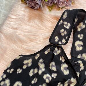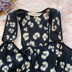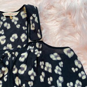 Rebecca Taylor black and cream colored silk leopard print blouse tank. This tank is in great used condition