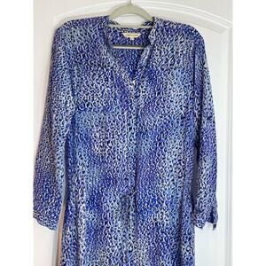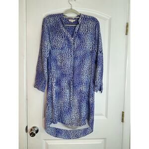 Rebecca Taylor Silk Mini Dress Size 2 Blue Leopard Print Fairy Core Boho Preppy