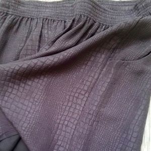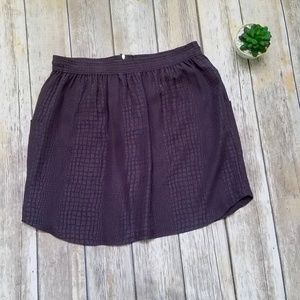 RP: Rebecca Taylor Silk Mini Skirt. Size 10. There is some wear on the side of the skirt, but no major pulls/rips. Cute embossed reptile skin (not sure if snek or alligator?) print. Color is more of a dark greige. Lined. Please ask all questions prior to purchase!
