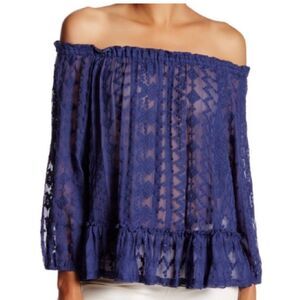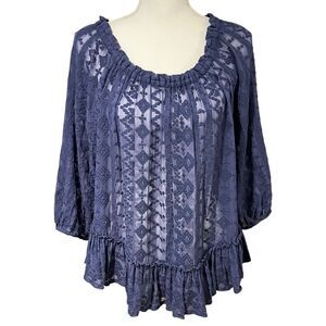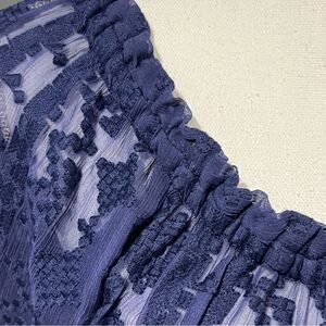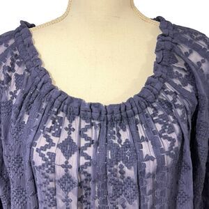Rebecca Taylor Blue Silk Sheer Embroidered Long Sleeve Blouse Flounce Hem