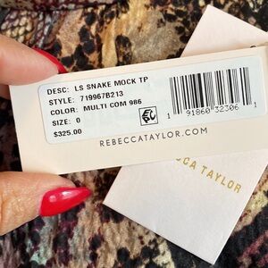 Rebecca Taylor Silk Snakeprint Mock Neck Blouse