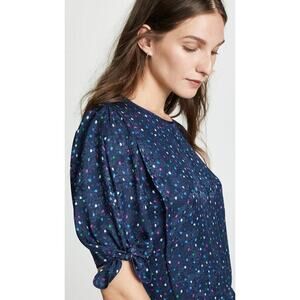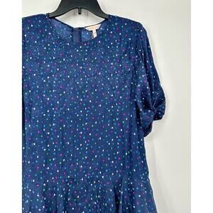 Rebecca Taylor Ruffled Polka Dot Silk Dress Size 4 Navy Combo