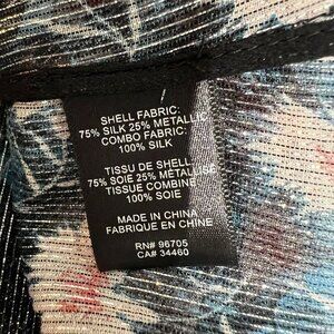 Rebecca Taylor Silk Thistle Fleur Flutter Sleeve Top Blouse Size S Black with Pink Floral, Sheer