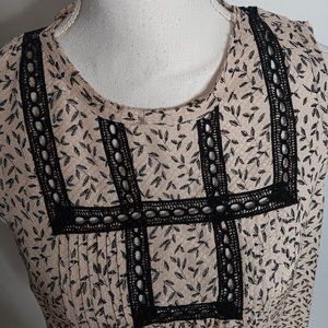 Rebecca Taylor Silk top Women's size 4 Raw Edge Short Sleeve Pleated Top
