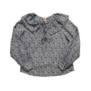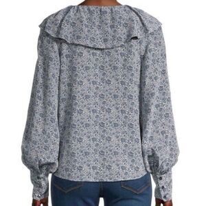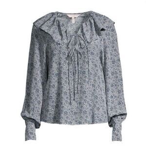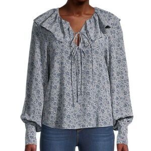 Rebecca Taylor silk blend blousen sleeve tie up ruffle trim neckline blouse.