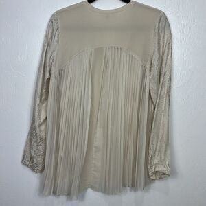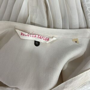 Rebecca Taylor Silk Pleated Back Cream Tan Top Blouse Size M