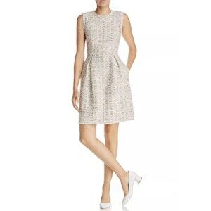 This Rebecca Taylor Size 0 Rainbow Tweed Pleated Fringe Trim Dress is a stylish and versatile option for various occasions. The dress features a sleeveless design with a round neckline and a zip closure, making it perfect for weddings, parties, or formal events. The multicolor tweed fabric with pleated and fringe accents gives the dress a unique and retro vibe. Designed as a fit & flare style, this knee-length dress is lined for added comfort and is perfect for year-round wear.