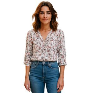 Rebecca Taylor Size 0 Semi Sheer Multi-Color Floral Silk Blouse Boho Peasant