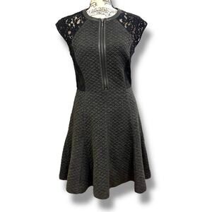 Elevate your wardrobe with this stunning Rebecca Taylor lace trim A-line mini dress. Perfect for any occasion, this dress features short lace trim sleeves, a round neckline with an exposed front zip closure. This dress is a must-have for any fashion-forward woman.