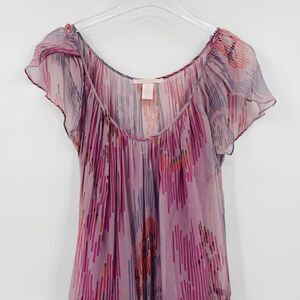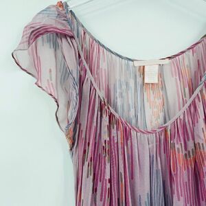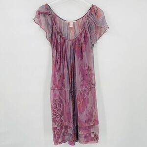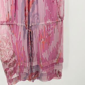Rebecca Taylor Size 6 Purple & Pink Silk Flutter Sleeve Drawstring Waist Dress