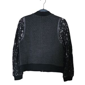 Rebecca Taylor Size 8 Black Quilted Lace Sleeve Bomber Jacket