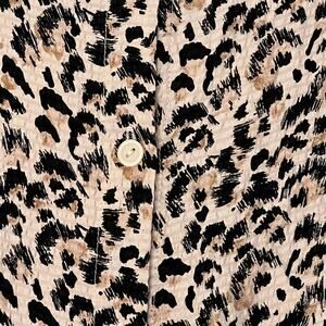 Rebecca Taylor Womens Size 8 Pleated Tier 100% Silk Mini Dress Tan Black Flowy Leopard Print