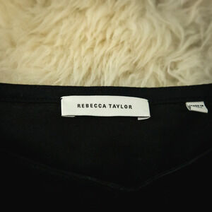 Rebecca Taylor Size Small S Black Ruched Shirred Long Sleeve Pima Cotton Top