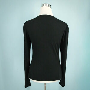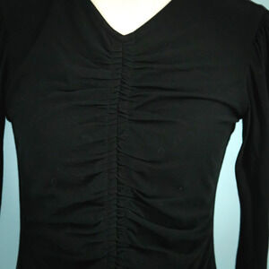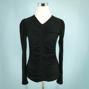 Rebecca Taylor Size Small S Black Ruched Shirred Front V Neck Long Sleeve Pima Cotton Knit Top Blouse Shirt - Style 721390B847