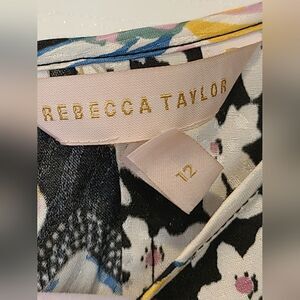 Rebecca Taylor Sleeveless Fleur Mix Dress, Boho Cottagecore Silk Blend | 12