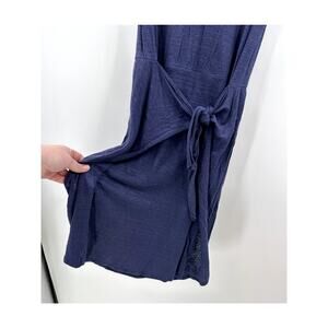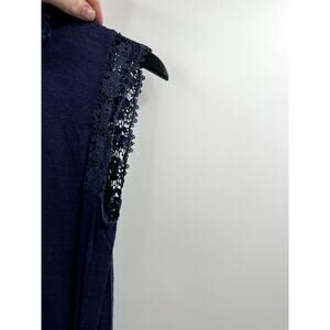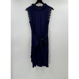 Rebecca Taylor Sleeveless Navy Blue Crochet 100% Linen Dress Size Large
