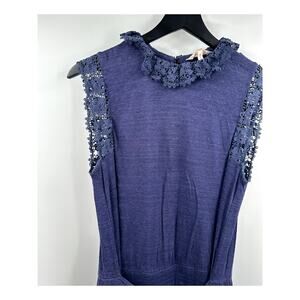 Rebecca Taylor Sleeveless Navy Blue Crochet Linen Dress Size Large