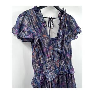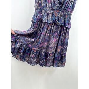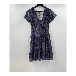Rebecca Taylor Sleeveless Ruffle Shimmer Print Mini Dress Size Medium